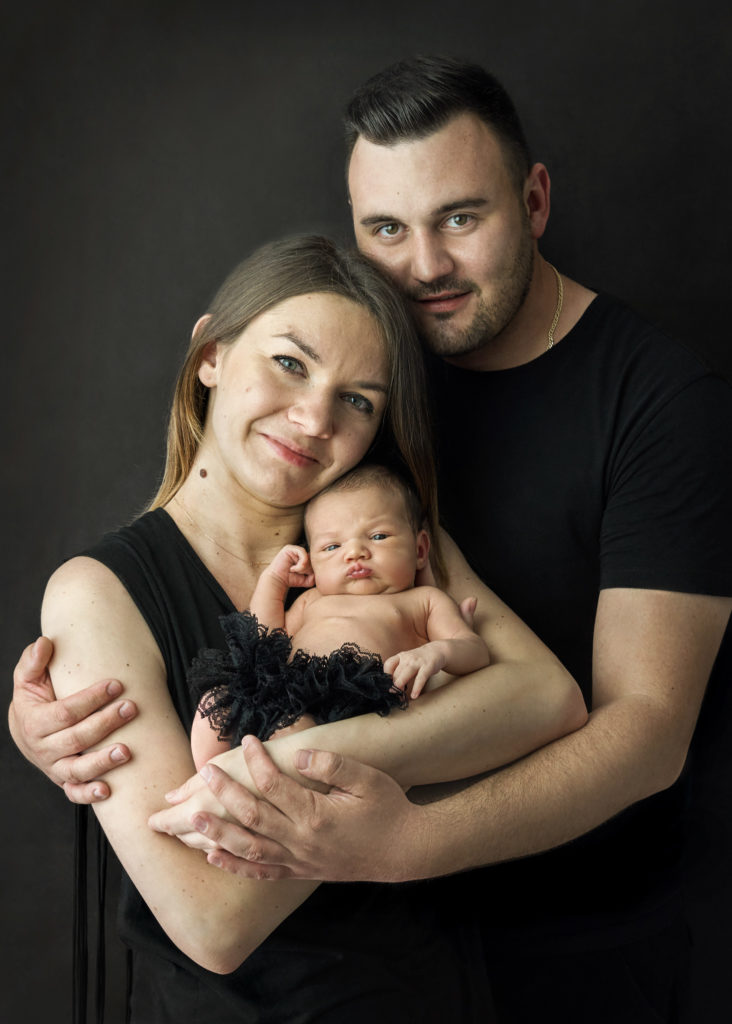 Oferuję sesje noworodkowe o charakterze studyjnym. Ponieważ pracuję mobilnie, takie sesje odbywają się w domu klienta. „Mały człowiek” jest na tyle mały, że dzięki przywiezionym przeze mnie akcesoriom (tłom, oświetleniu, rekwizytom), które mieszczą się w Państwa mieszkaniu, zdjęcia zyskują profesjonalny, studyjny charakter. W ten sam sposób powstają ujęcia rodzinne z noworodkiem.
